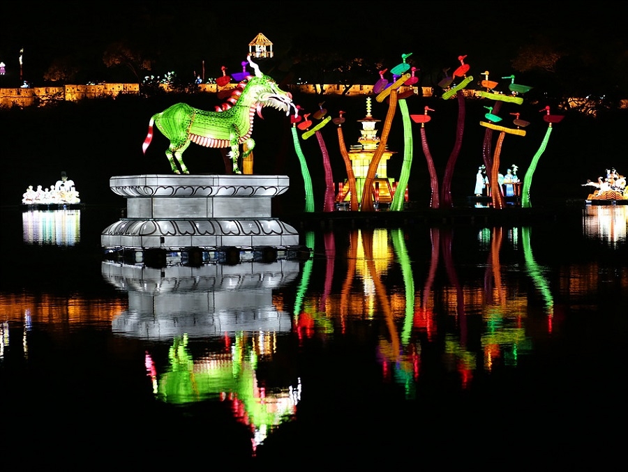 Vào buổi sáng nếu như Lễ hội thu hút sự chú ý của mọi người bằng những cuộc diễu hành và các cuộc tranh tài hết sức đa dạng và phong phú thì khi màn đêm buông xuống cả một bầu trời và mặt hồ mênh mông đều được bao phủ bởi màn trình diễn pháo hoa hoành tráng đầy màu sắc tạo nên một cảnh tượng hùng vĩ khiến người xem phải choáng ngợp bởi vẻ đẹp lộng lẫy của nó.