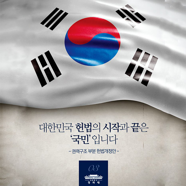Hiến pháp của Hàn Quốc được ban hành vào ngày 17 tháng 7 năm 1948, và cho đến năm 1987 thì 9 lần sửa đổi đã được thực hiện. Theo Hiến pháp, Chính phủ Đại Hàn Dân Quốc được thành lập vào ngày 15 tháng 8 năm 1948, bởi tổng thống 이승만. Các nội dung sửa đổi hiến pháp chính như sau. Lần sửa đổi hiến pháp đầu tiên (năm 1952) đã thay đổi bầu cử gián tiếp vốn có thành cuộc bầu cử trực tiếp. Trong lần sửa đổi hiến pháp lần thứ ba (1960), hình thái chính phủ được chuyển từ chế độ tổng thống sang chế độ nội các nghị viện, đồng thời thực hiện chế độ lưỡng viện. Trong lần sửa đổi hiến pháp lần thứ 5 (năm 1962), lại thay đổi lại chế độ tổng thống và lần đầu tiên được xác định bằng một cuộc trưng cầu dân ý. Trong lần sửa đổi hiến pháp lần thứ 7 (năm 1972), quyền lực của tổng thống được tăng cường và phương thức bầu tổng thống được chuyển sang bầu cử gián tiếp. Trong lần sửa đổi thứ 9 (năm 1987), các đảng cầm quyền và đối lập đã đồng thuận sửa đổi hiến pháp thành chế độ bầu cử tổng thống trực tiếp và chế độ đơn nhiệm kỳ 5 năm duy nhất, đồng thời việc đảm bảo các quyền cơ bản của người dân được tăng cường hơn nữa.