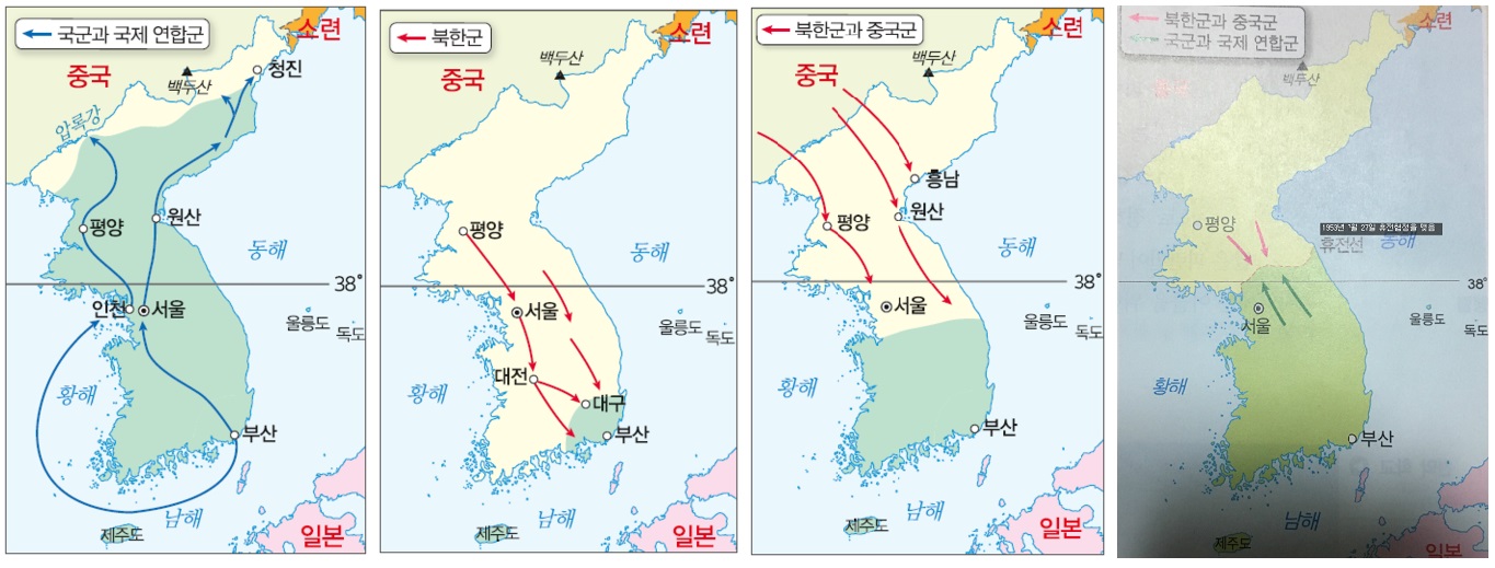 Quân đội Hàn Quốc và Liên hợp quốc, vốn bị đẩy lùi đến khu vực lân cận sông Nakdong, đã thay đổi bầu không khí của cuộc chiến thông qua chiến dịch đổ bộ Incheon. Sau đó, đã giành lại được Seoul và vượt qua vĩ tuyến 38 đi lên sông tới Áp Lục của Bắc Hàn. Vào thời điểm đó, Trung Quốc đã đưa một đội quân lớn đến kết hợp cùng quân đội Bắc Hàn phản công lại và lực lượng của Hàn Quốc và Liên Hợp Quốc đã rút lui. Cuối cùng, vào ngày 4 tháng 1 năm 1951, quân đội Hàn Quốc và Liên hợp quốc lại bị giành mất Seoul (rút lui 1/4).